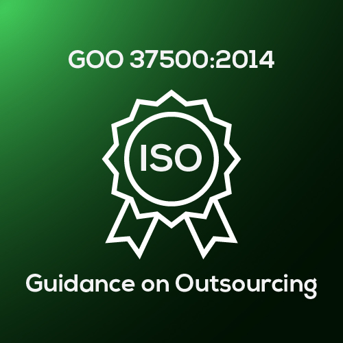 The GOO 37500:2014 Outsourcing Guidance certification highlights our focus on best practices in outsourcing, ensuring high-quality service and effective risk management.